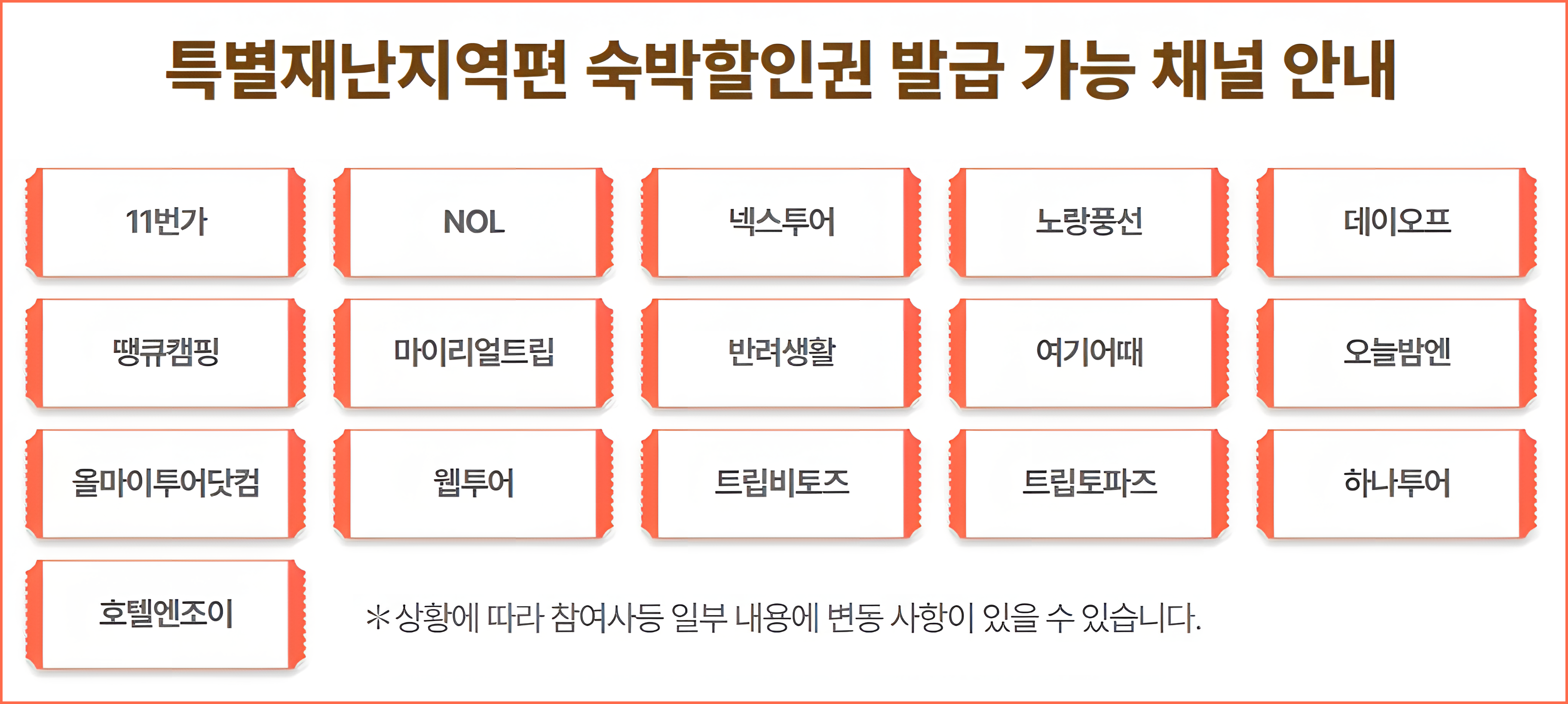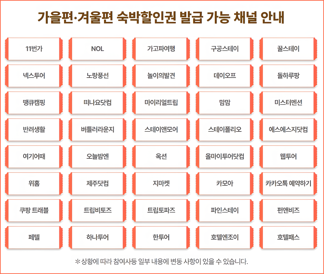 지마켓, 노랑풍선, 하나투어, 여기 어때, 쿠팡트래블 등 40개 이상의 채널을 통해 예약이 가능하며, 각 채널별 혜택이 다를 수 있으니 사전 확인은 필수!